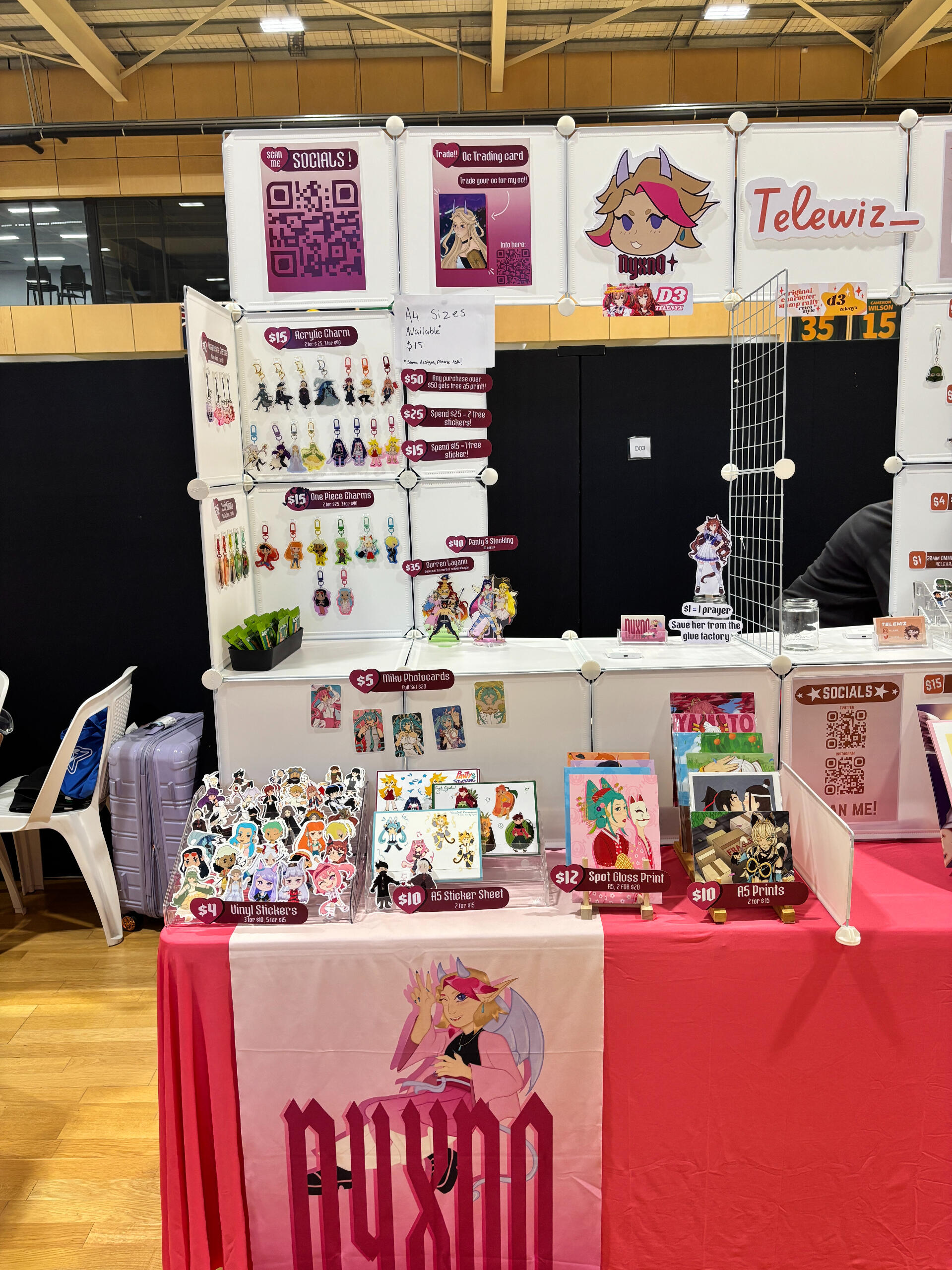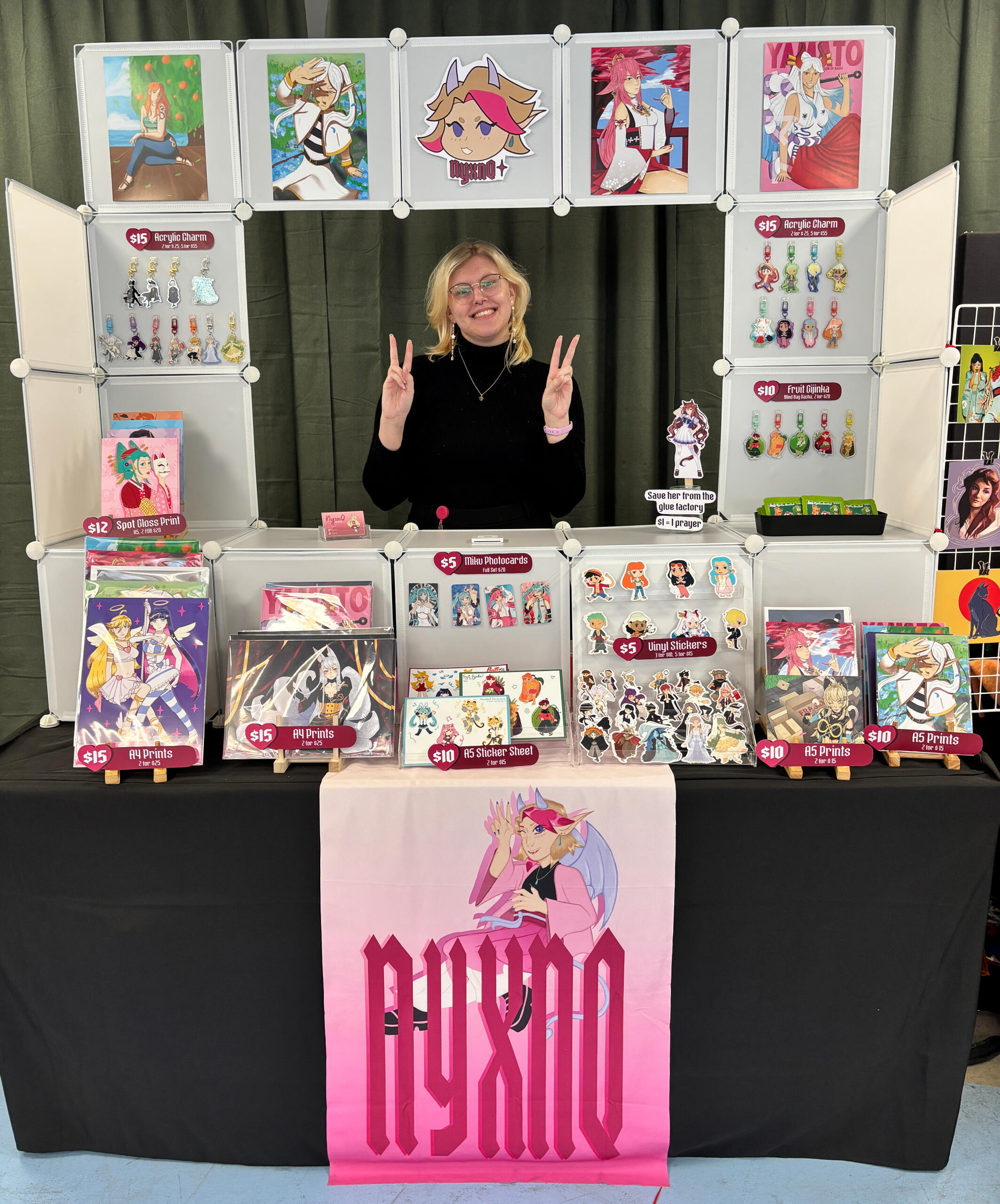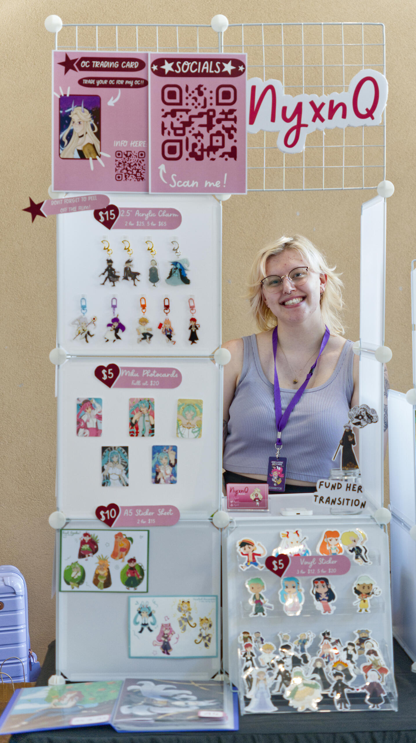 Hi! I'm Nyx, an illustrator and merchandise maker based in Adelaide/Kaurna Land, Australia. I love to create cute characters and turn them into trinkets. I love anime, video games, manga and film!